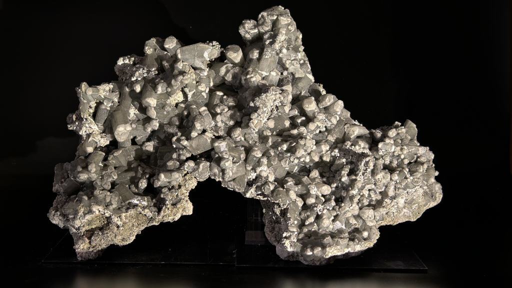 Большая друза серых с белыми «шапочками» кристаллов натролита из знаменитой «Натролитовой пещеры» - естественной минерализованной полости в гигантском пегматите, вскрытом в феврале 2017 года во время горно-проходческих работ на Кировском руднике АО «Апатит» в Хибинском массиве. «Натролитовая пещера» - уникальный минералогический объект, давший значительное количество великолепных образцов натролита в разные музеи и частные коллекции всего мира, но именно представленная перед вами друза – является одной из крупнейших, извлеченных на этом объекте. Представленный минералогический образец – дар Касаткина Анатолия Витальевича – известнейшего во всем мире исследователя и первооткрывателя новых минеральных видов.
